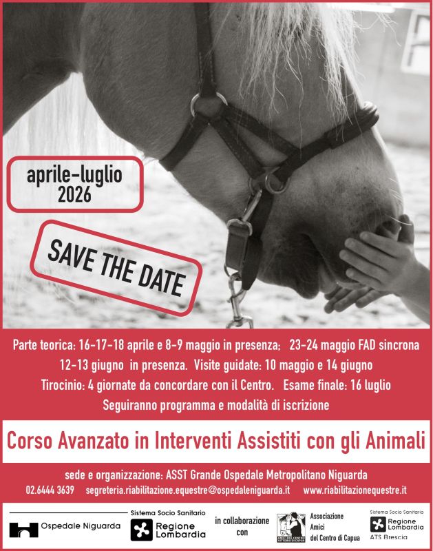 Da aprile a luglio 2026 presso il Centro di Capua un nuovo Corso Avanzato in Interventi Assistiti con gli Animali.