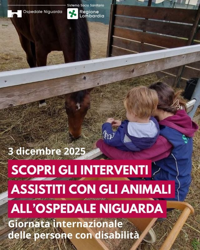 In occasione della Giornata internazionale delle persone con disabilità, l’Ospedale Niguarda ha promosso un evento per valorizzare e raccontare il ruolo riabilitativo e sociale degli Interventi Assistiti con gli Animali (IAA) come opportunità di inclusione e benessere.Durante la mattinata ci sono stati momenti di interazione con gli animali, di incontro con i professionisti sanitari e operatori di Niguarda specializzati in IAA e testimonianze di pazienti e volontari.