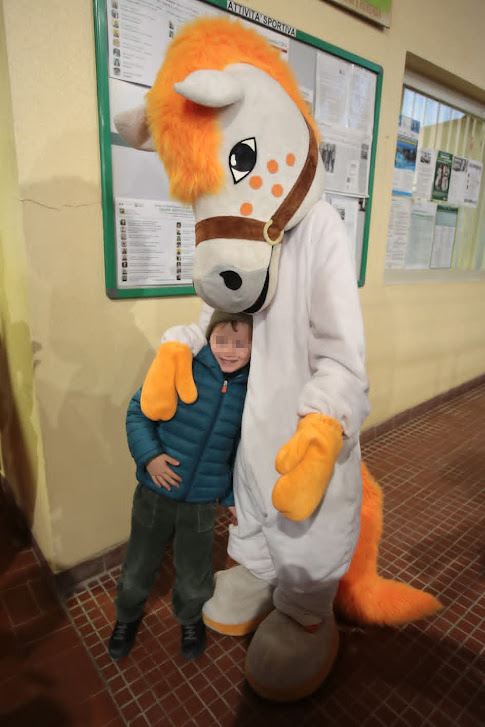 Dopo i saluti delle autorità è arrivata la mascotte della FISE, Tony il Pony, che come ogni anno porta regalini e sorrisi ai bambini ricoverati in Ospedale.