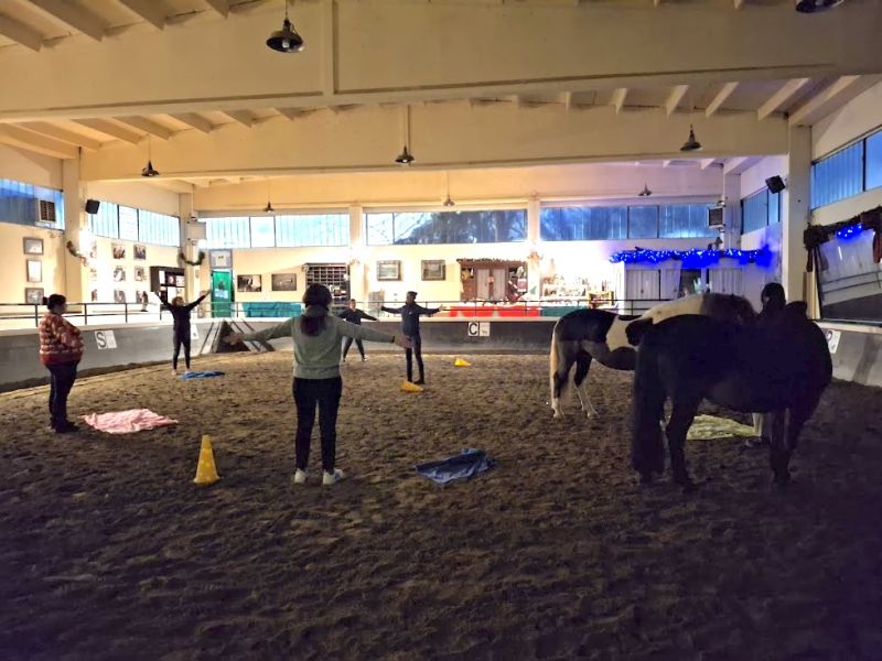 Fare ginnastica rilassante in mezzo ai cavalli che girano tra di noi, ci guardano e ci annusano, è un'esperienza che nessuna palestra, e nessun maneggio, faranno mai provare.
