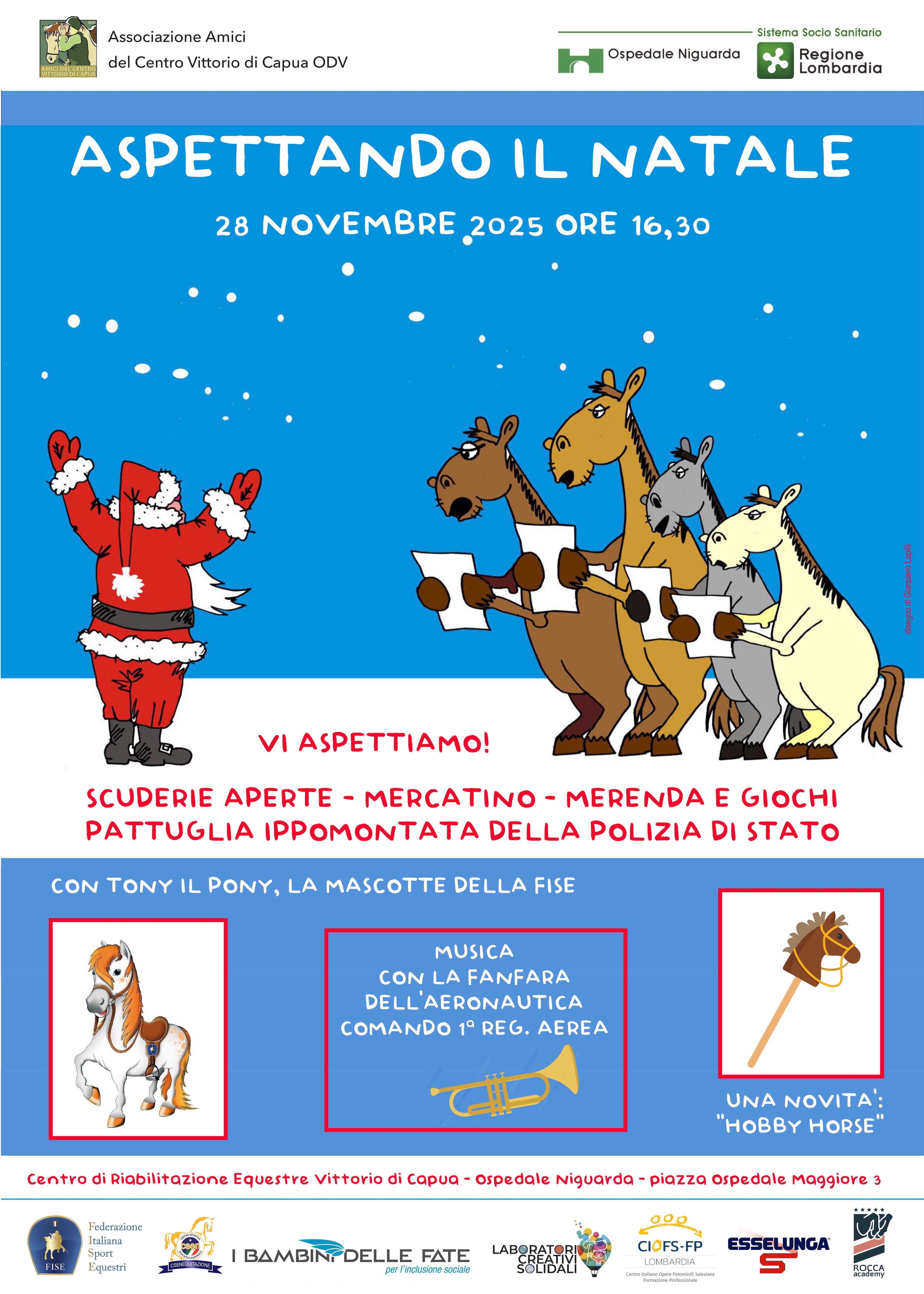 Ci sarà Tony il Pony, la mascotte della FISE che ogni anno porta i regali ai bambini ospiti di molti ospedali e che è ormai diventato ormai un amico dei nostro bambini.